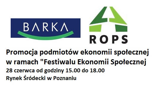 Fundacja Barka wraz z Regionalnym Ośrodkiem Polityki Społecznej organizuje w najbliższą niedzielę 28 czerwca na Rynku Śródeckim w Poznaniu w godzinach od 15.00 do 18.00 wydarzenie mające na celu promocję podmiotów ekonomii społecznej (spółdzielni socjalnych, przedsiębiorstw społecznych oraz centrów integracji społecznej) w ramach „Festiwalu Ekonomii Społecznej”.To promocyjne wydarzenie będzie realizowane w ramach projektu systemowego „Koordynacja i współpraca na rzecz integracji społecznej Wielkopolski” współfinansowanego ze środków Unii Europejskiej w ramach Europejskiego Funduszu Społecznego.